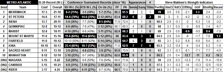 - Other single-digit MAAC tourney favorites (-2.5 or higher) are just 35-28 SU but 23-38-2 ATS (37.7%) since 2017.