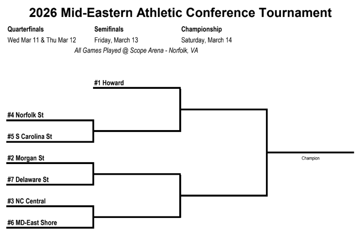 Format: No. 1 Howard gets a bye to the semifinals, No. 2 Morgan State plays No. 7 Delaware State in the only Wednesday quarterfinal to have a day off before the semis
