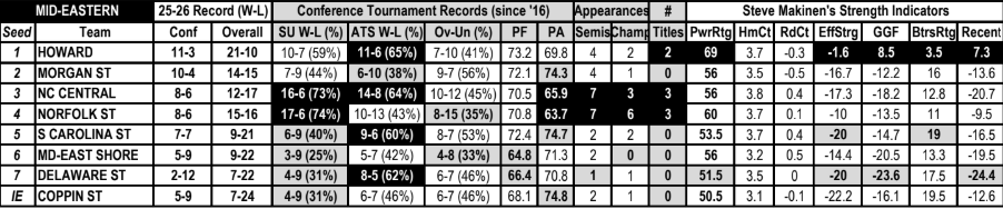 - MEAC Semifinal favorites are on an 11-4 SU and 10-5ATS (66.7%) surge.