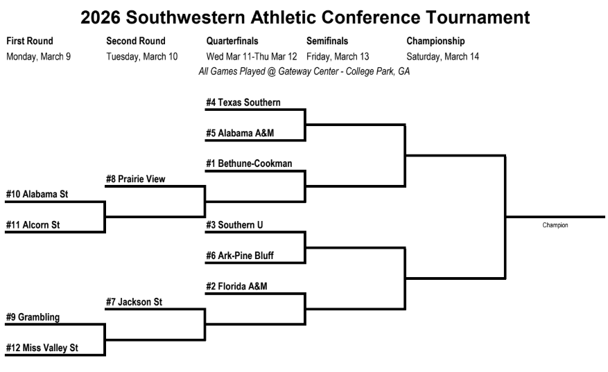 For the first time in a very, very, very long time in the SWAC, every team will participate in the conference tournament. We’ve seen the field thinned by teams not qualifying for the tournament, but also by APR violations, transitional phases to Division I, or postseason bans for other reasons. So, all 12 teams are in the field and the format is different for this year’s event.