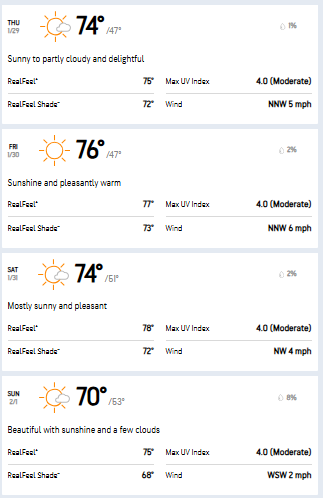The AccuWeather forecast indicates a nice weekend in San Diego with little to no wind.