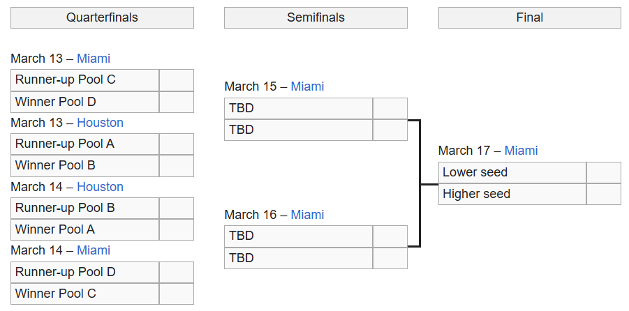 The teams that advance go into a bracket-style format for the quarterfinals, semifinals, and finals.