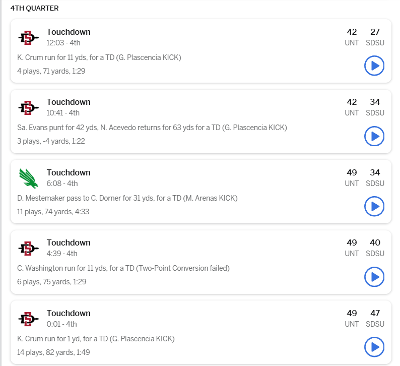 But, then we found out San Diego State starting QB Jayden Denegal wasn’t going to play, while Mean Green QB Drew Mestemaker was going to finish what he started with his team. In the end, the line closed -7 or -7.5. Ultimately, North Texas would take a 42-20 lead going into the fourth quarter and everything looked safe for Mean Green backers at any number…until it didn’t.